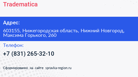 Tradematica по адресу 603155, Нижегородская область, Нижний Новгород, Максима Горького, 260 в дальнейшем Организация, размещена в следующих категориях: