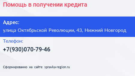 Помощь в получении кредита по адресу улица Октябрьской Революции, 43, Нижний Новгород в дальнейшем Организация, размещена в следующих категориях: