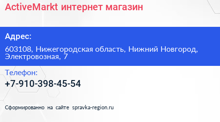 ActiveMarkt, интернет-магазин по адресу 603108, Нижегородская область, Нижний Новгород, Электровозная, 7 в дальнейшем Организация, размещена в следующих категориях: