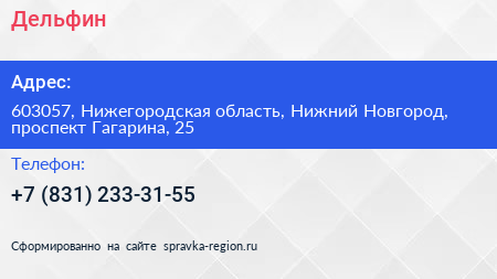Дельфин по адресу 603057, Нижегородская область, Нижний Новгород, проспект Гагарина, 25 в дальнейшем Организация, размещена в следующих категориях:
