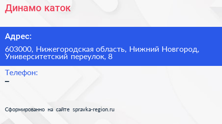 Динамо, каток по адресу 603000, Нижегородская область, Нижний Новгород, Университетский переулок, 8 в дальнейшем Организация, размещена в следующих категориях: