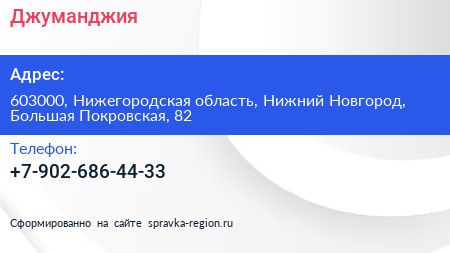 Джуманджия по адресу 603000, Нижегородская область, Нижний Новгород, Большая Покровская, 82 в дальнейшем Организация, размещена в следующих категориях: