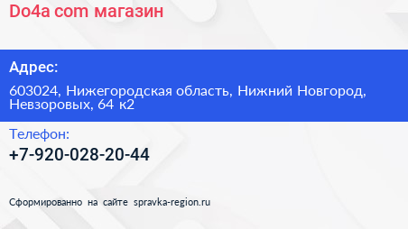 Do4a.com, магазин по адресу 603024, Нижегородская область, Нижний Новгород, Невзоровых, 64 к2 в дальнейшем Организация, размещена в следующих категориях: