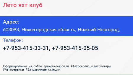 Лето, яхт-клуб по адресу 603093, Нижегородская область, Нижний Новгород, в дальнейшем Организация, размещена в следующих категориях: