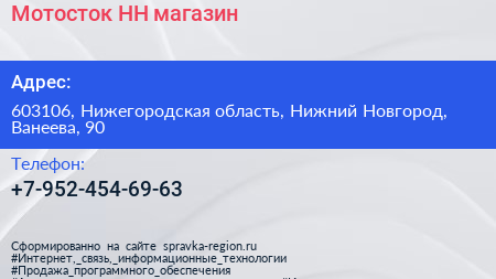 Мотосток-НН, магазин по адресу 603106, Нижегородская область, Нижний Новгород, Ванеева, 90 в дальнейшем Организация, размещена в следующих категориях: