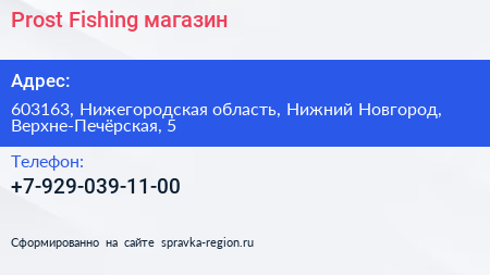 Prost Fishing, магазин по адресу 603163, Нижегородская область, Нижний Новгород, Верхне-Печёрская, 5 в дальнейшем Организация, размещена в следующих категориях: