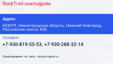 RockTrail, скалодром по адресу 603079, Нижегородская область, Нижний Новгород, Московское шоссе, 83Б в дальнейшем Организация, размещена в следующих категориях: