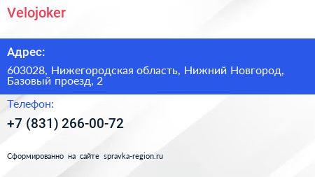 Velojoker по адресу 603028, Нижегородская область, Нижний Новгород, Базовый проезд, 2 в дальнейшем Организация, размещена в следующих категориях: