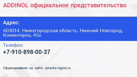 ADDINOL, официальное представительство по адресу 603014, Нижегородская область, Нижний Новгород, Коминтерна, 45а в дальнейшем Организация, размещена в следующих категориях: