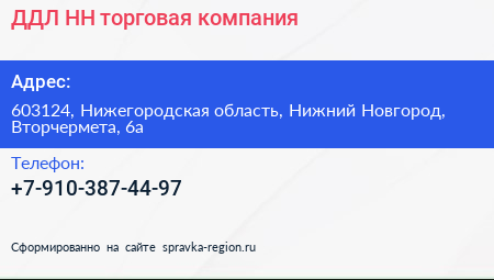 ДДЛ-НН, торговая компания по адресу 603124, Нижегородская область, Нижний Новгород, Вторчермета, 6а в дальнейшем Организация, размещена в следующих категориях: