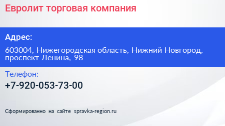 Евролит, торговая компания по адресу 603004, Нижегородская область, Нижний Новгород, проспект Ленина, 98 в дальнейшем Организация, размещена в следующих категориях: