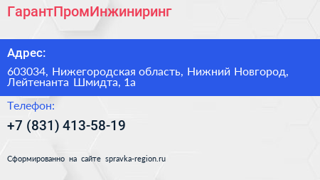 ГарантПромИнжиниринг по адресу 603034, Нижегородская область, Нижний Новгород, Лейтенанта Шмидта, 1а в дальнейшем Организация, размещена в следующих категориях: