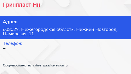 Гринпласт-Нн по адресу 603029, Нижегородская область, Нижний Новгород, Памирская, 11 в дальнейшем Организация, размещена в следующих категориях: