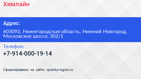 Химлайн по адресу 603092, Нижегородская область, Нижний Новгород, Московское шоссе, 302/1 в дальнейшем Организация, размещена в следующих категориях: