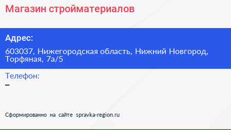 Магазин стройматериалов по адресу 603037, Нижегородская область, Нижний Новгород, Торфяная, 7а/5 в дальнейшем Организация, размещена в следующих категориях: