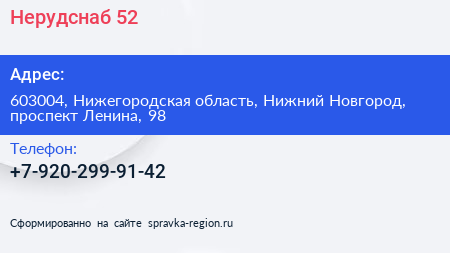 Нерудснаб-52 по адресу 603004, Нижегородская область, Нижний Новгород, проспект Ленина, 98 в дальнейшем Организация, размещена в следующих категориях:
