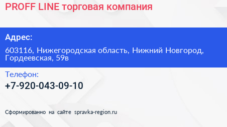PROFF LINE, торговая компания по адресу 603116, Нижегородская область, Нижний Новгород, Гордеевская, 59в в дальнейшем Организация, размещена в следующих категориях: