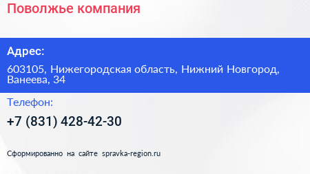 Поволжье, компания по адресу 603105, Нижегородская область, Нижний Новгород, Ванеева, 34 в дальнейшем Организация, размещена в следующих категориях: