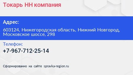 Токарь НН, компания по адресу 603124, Нижегородская область, Нижний Новгород, Московское шоссе, 298 в дальнейшем Организация, размещена в следующих категориях:
