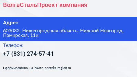 ВолгаСтальПроект, компания по адресу 603032, Нижегородская область, Нижний Новгород, Памирская, 11и в дальнейшем Организация, размещена в следующих категориях: