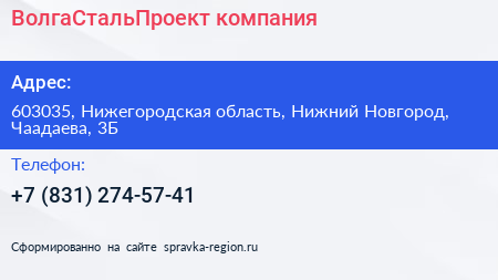 ВолгаСтальПроект, компания по адресу 603035, Нижегородская область, Нижний Новгород, Чаадаева, 3Б в дальнейшем Организация, размещена в следующих категориях: