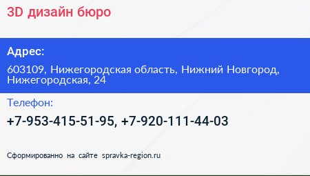 3D, дизайн-бюро по адресу 603109, Нижегородская область, Нижний Новгород, Нижегородская, 24 в дальнейшем Организация, размещена в следующих категориях: