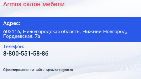 Armos, салон мебели по адресу 603116, Нижегородская область, Нижний Новгород, Гордеевская, 7а в дальнейшем Организация, размещена в следующих категориях:
