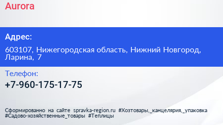 Aurora по адресу 603107, Нижегородская область, Нижний Новгород, Ларина, 7 в дальнейшем Организация, размещена в следующих категориях: