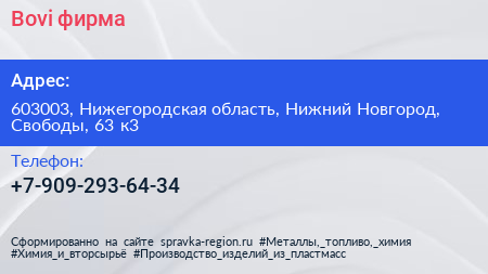 Bovi, фирма по адресу 603003, Нижегородская область, Нижний Новгород, Свободы, 63 к3 в дальнейшем Организация, размещена в следующих категориях: