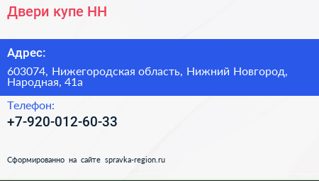 Двери-купе НН по адресу 603074, Нижегородская область, Нижний Новгород, Народная, 41а в дальнейшем Организация, размещена в следующих категориях: