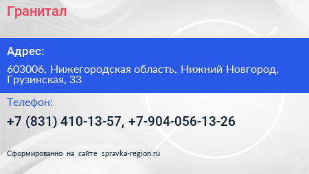 Гранитал по адресу 603006, Нижегородская область, Нижний Новгород, Грузинская, 33 в дальнейшем Организация, размещена в следующих категориях: