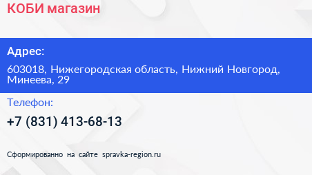 КОБИ, магазин по адресу 603018, Нижегородская область, Нижний Новгород, Минеева, 29 в дальнейшем Организация, размещена в следующих категориях: