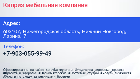 Каприз, мебельная компания по адресу 603107, Нижегородская область, Нижний Новгород, Ларина, 7 в дальнейшем Организация, размещена в следующих категориях: