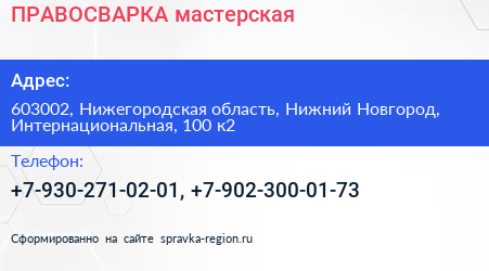 #ПРАВОСВАРКА, мастерская по адресу 603002, Нижегородская область, Нижний Новгород, Интернациональная, 100 к2 в дальнейшем Организация, размещена в следующих категориях: