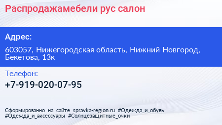 Распродажамебели.рус, салон по адресу 603057, Нижегородская область, Нижний Новгород, Бекетова, 13к в дальнейшем Организация, размещена в следующих категориях: