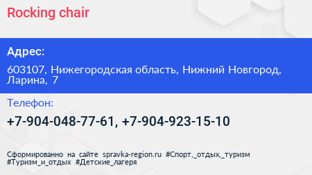 Rocking chair по адресу 603107, Нижегородская область, Нижний Новгород, Ларина, 7 в дальнейшем Организация, размещена в следующих категориях: