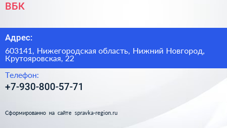 ВБК по адресу 603141, Нижегородская область, Нижний Новгород, Крутояровская, 22 в дальнейшем Организация, размещена в следующих категориях: