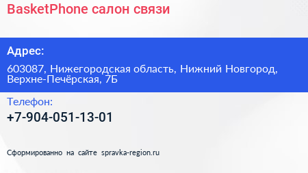 BasketPhone, салон связи по адресу 603087, Нижегородская область, Нижний Новгород, Верхне-Печёрская, 7Б в дальнейшем Организация, размещена в следующих категориях: