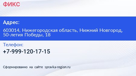 ФИКС по адресу 603014, Нижегородская область, Нижний Новгород, 50-летия Победы, 18 в дальнейшем Организация, размещена в следующих категориях: