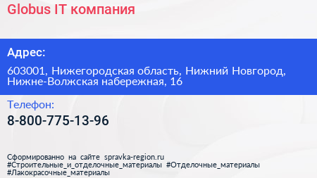 Globus, IT-компания по адресу 603001, Нижегородская область, Нижний Новгород, Нижне-Волжская набережная, 16 в дальнейшем Организация, размещена в следующих категориях: