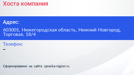 Хоста, компания по адресу 603001, Нижегородская область, Нижний Новгород, Торговая, 18/4 в дальнейшем Организация, размещена в следующих категориях: