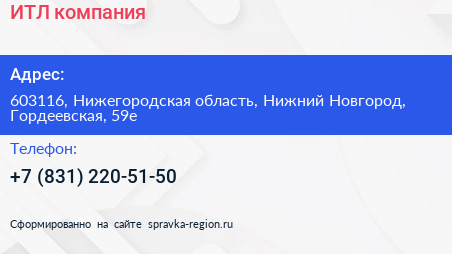 ИТЛ, компания по адресу 603116, Нижегородская область, Нижний Новгород, Гордеевская, 59е в дальнейшем Организация, размещена в следующих категориях: