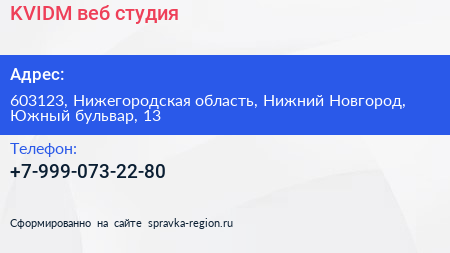 KVIDM, веб-студия по адресу 603123, Нижегородская область, Нижний Новгород, Южный бульвар, 13 в дальнейшем Организация, размещена в следующих категориях:
