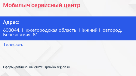 Мобилыч, сервисный центр по адресу 603044, Нижегородская область, Нижний Новгород, Берёзовская, 81 в дальнейшем Организация, размещена в следующих категориях: