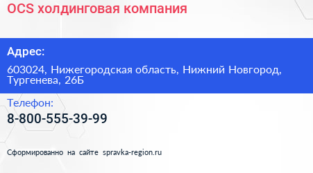 OCS, холдинговая компания по адресу 603024, Нижегородская область, Нижний Новгород, Тургенева, 26Б в дальнейшем Организация, размещена в следующих категориях: