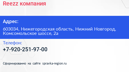 Reezz, компания по адресу 603034, Нижегородская область, Нижний Новгород, Комсомольское шоссе, 2а в дальнейшем Организация, размещена в следующих категориях: