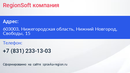 RegionSoft, компания по адресу 603003, Нижегородская область, Нижний Новгород, Свободы, 15 в дальнейшем Организация, размещена в следующих категориях:
