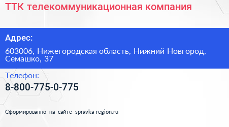 ТТК, телекоммуникационная компания по адресу 603006, Нижегородская область, Нижний Новгород, Семашко, 37 в дальнейшем Организация, размещена в следующих категориях: