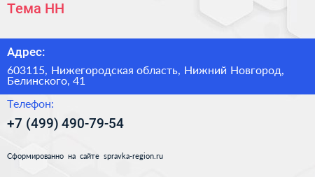 Тема НН по адресу 603115, Нижегородская область, Нижний Новгород, Белинского, 41 в дальнейшем Организация, размещена в следующих категориях: