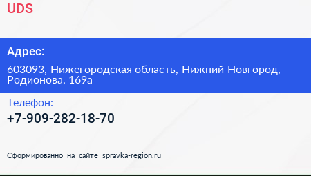 UDS по адресу 603093, Нижегородская область, Нижний Новгород, Родионова, 169а в дальнейшем Организация, размещена в следующих категориях: